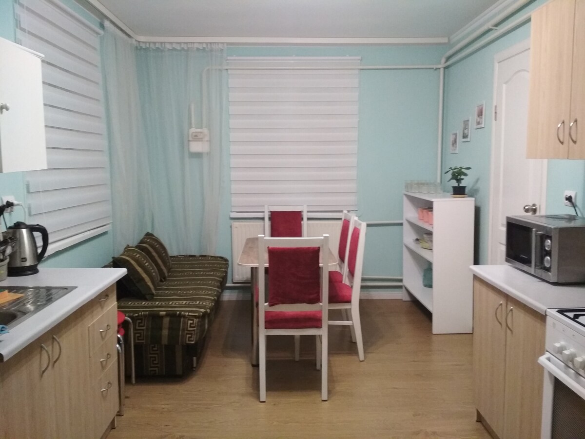 Дом находится возле города Ровно, на расстоянии 4,5 км от трассы Киев-Чоп, в тихой живописной сельской местности, вблизи пяти местных озёр, лугов и холмов. В распоряжении гостей 3 спальни, кухня-гостинная, ванна, беседка, мангал, дрова. В кухне есть газовая плита, чайник, микроволновка, холодильник. Кровати удобные, постель чистая, есть по одному банному полотенцу. Здесь вы получите не только ночлег, но и заряд новых сил, даруемый природой, тишиной, уединением, свободой.