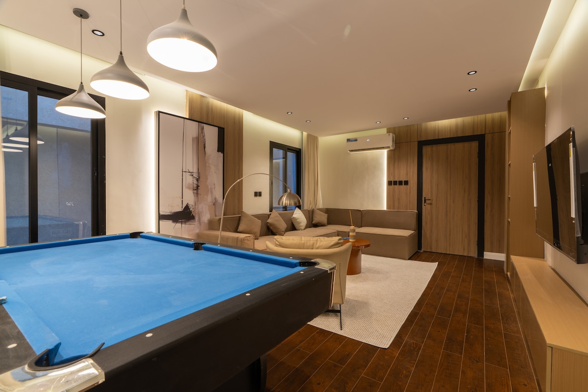 靠近大道的優雅兩居室公寓,帶客廳和撞球桌