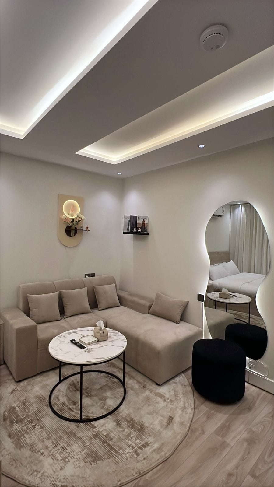 在私人藝術家工作室體驗獨特的放鬆舒適。 單間公寓包括一張床和一個側面休息區,您可以在這裡觀賞 65 吋智慧螢幕。 還有一個獨立的小廚房和咖啡,滿足您的所有需求,以及時尚的戶外區域和火坑。 地理位置靠近所有服務、旅遊目的地和利雅得季節區域(大道、競技場等),5分鐘內即可抵達。 我們很樂意接待您,並與我們分享體驗!
