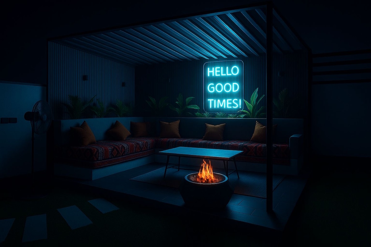 在私人藝術家工作室體驗獨特的放鬆舒適。 單間公寓包括一張床和一個側面休息區,您可以在這裡觀賞 65 吋智慧螢幕。 還有一個獨立的小廚房和咖啡,滿足您的所有需求,以及時尚的戶外區域和火坑。 地理位置靠近所有服務、旅遊目的地和利雅得季節區域(大道、競技場等),5分鐘內即可抵達。 我們很樂意接待您,並與我們分享體驗!