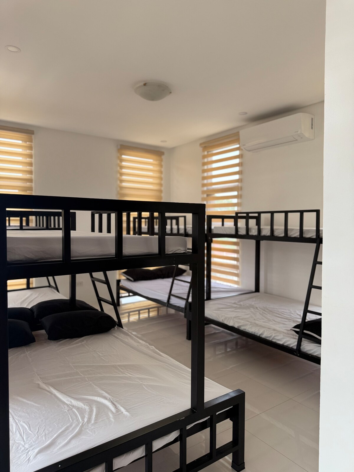 This villa has 4 bedrooms (2 located at the 1st floor, 2 at the 2nd floor) all furnished with 2 queen-sized bed each with its own toilet and hot & cold shower. Accommodation good for 16 persons. Living room with TV and sofa set. 8 seater long dining table. Fully equipped kitchen with gas burner, microwave oven, full-size refrigerator and hot & cold water dispenser. Living and Dining rooms over-looking the infinity pool accessible exclusively for villa guests.