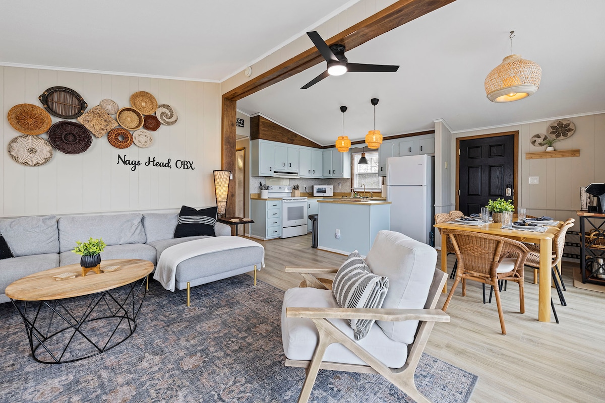 Enjoy a relaxing stay in our beautifully-decorated one level ranch style home. With a sleek and luxurious finishing touches, this two-bedroom, two-bathroom home is the perfect place for a stay in the heart of Kill Devil Hills, located less than a mile from the ocean and near some of the best local eateries and shops in the area ✓ 5 Min Drive to Wright Brothers National Memorial ✓ 3 Min Drive to Nags Head Woods Preserve ✓ 6 Min Drive to Jockey's Ridge State Park We Look Forward To Hosting You!