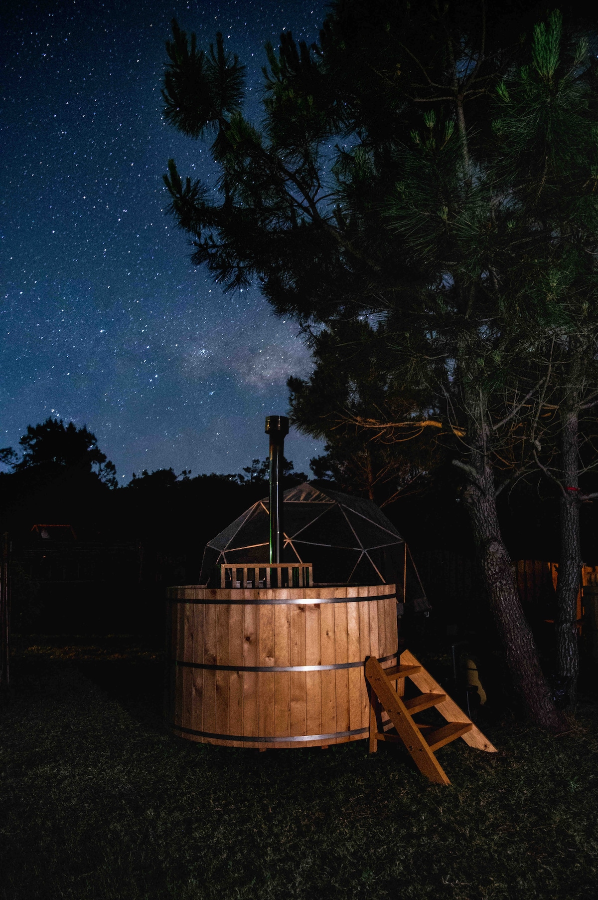 在松樹林中露營,含史詩早餐。 直徑5公尺的鐘形帳篷,配有大床、電、暖光和獨特的Wobibi細節。 非常適合情侶、家庭、小型團體或獨自旅行者。 距離Playa Grande、Laguna Negra和Parque Santa Teresa 10分鐘車程的親密和藝術避難所。 Wobibi的自然、舒適和獨特體驗。 這是一個讓人深度休息並享受生活簡單魔法的空間。