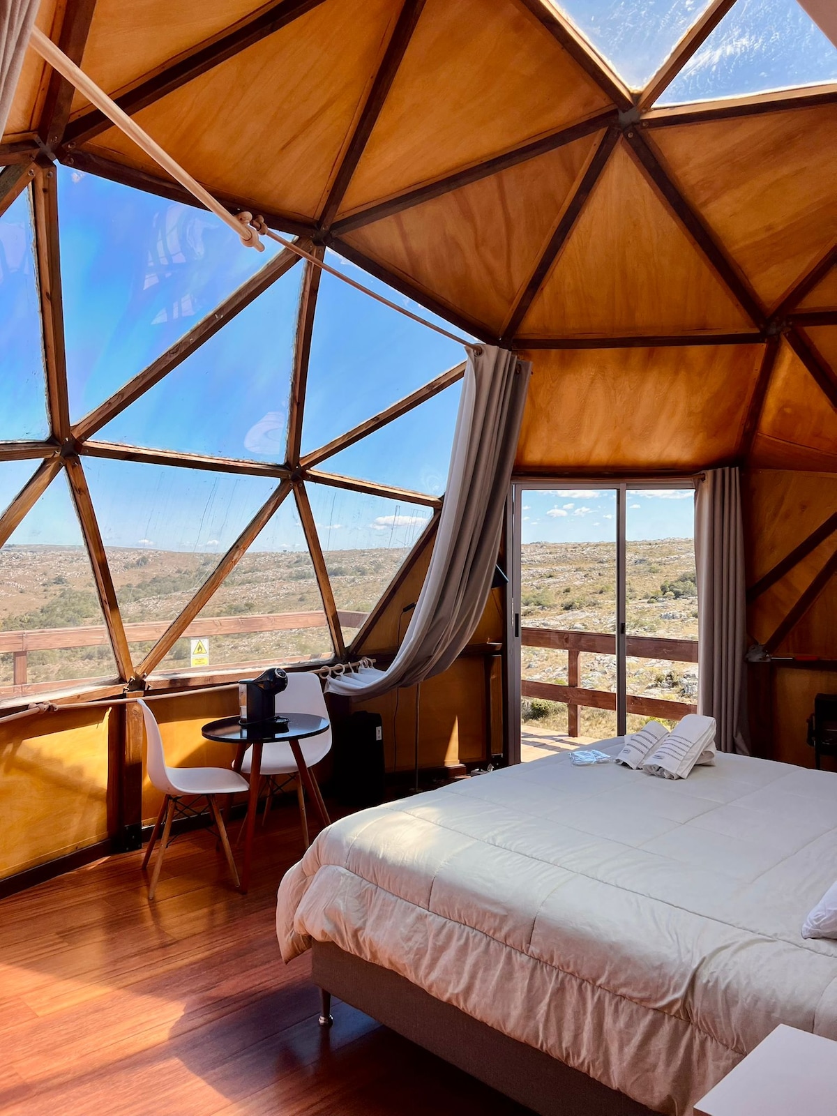 包括自製鄉村早餐。 享受這個浪漫的自然環境,享用早餐和按摩浴缸。 千年岩石上的精品圓頂屋,四周是大自然和寧靜。250公頃可自由行走,無盡的天空和全年可享受的加熱按摩浴缸。 特大床、空調、帶水力按摩間的浴室和每個細節設計,讓您可以與世界脫節。 獨特的親密體驗,設計位於山脈的中心。