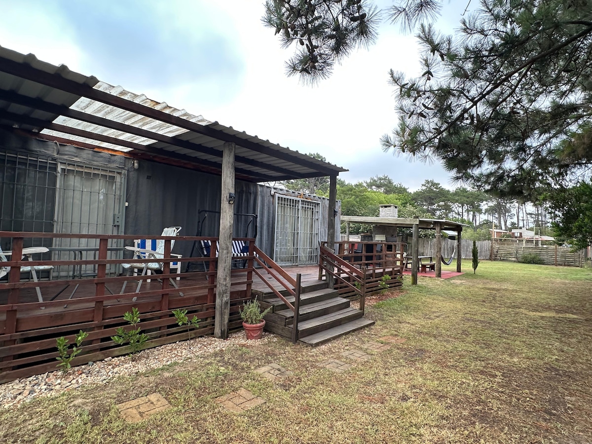 URUCU CANT HOUSE IN SPA LA ESMERALDA, ROCHA ,非常適合2人入住,位於區域和自然環境中,木頭茂密,非常安靜,距離海洋海岸12個街區。 除了浴室外,這個空間還有一個融合了客廳、廚房和臥室的氣氛。住宿入口處還有一個有遮蔽的室外空間。它距離度假村的一個自助服務設施7個街區。