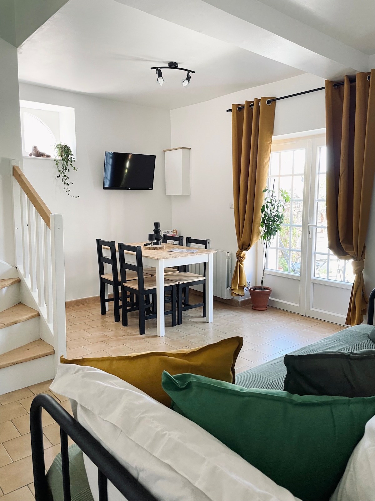 Au cœur d'un charmant village viticole au bord du Layon, proche du parcours de "La Loire à vélo" et sur l'itinéraire "Layon Aubance", ce logement indépendant de 65 m2 est aménagé à l'étage d'un ancien chai. Espace de vie spacieux avec une cuisine équipée, une chambre avec un lit 2 personnes, une mezzanine avec 2 lits 1 personne et une salle de douche. Accès WIFI + possibilité de garer les 2 roues à l'abri.