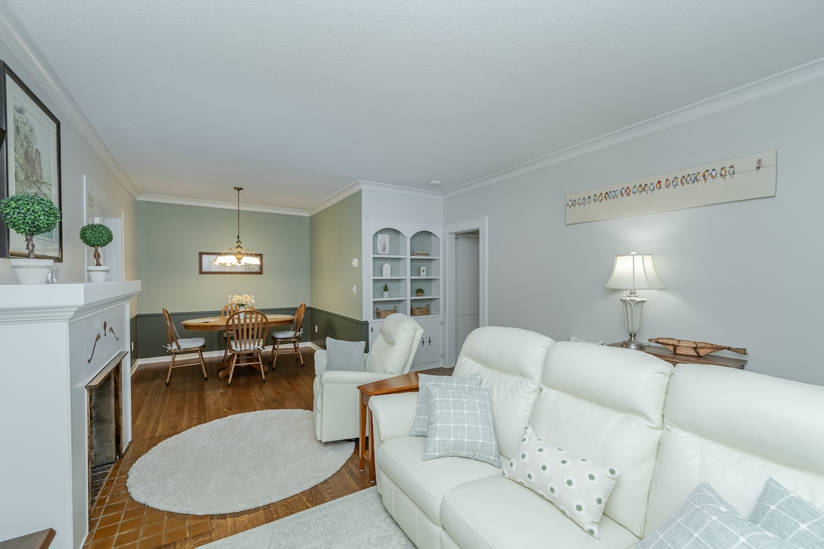 溫馨舒適的翻新房源。美麗的廚房和起居區域。 享受(撞球、桌上足球、空中曲棍球、棋盤遊戲)遊戲,在火坑烤棉花糖,看雞,或在一個不錯的中產階級社區散步。 步行5分鐘即可抵達沃爾瑪、Kohl 's、Marshalls ,享用必需品,或坐在星巴克享用美味飲品,或在許多餐廳之一享用美食,步行即可抵達。