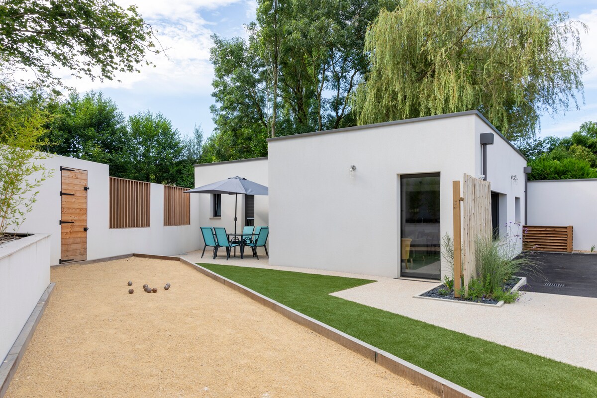 逃離塵囂,入住這個安靜時尚的地方,是在大西部旅遊或停留的理想住宿: 距離萊賀比耶8公里,距離普伊杜富12公里,距離拉特里切里湖12公里,距離普佩特17公里,距離南特、昂傑和旺德耶訥海岸1小時。 您可以隨意使用: 寢具(床單、被套和枕頭套) 。床鋪會在你抵達時整理好 .浴室用品 .免費WiFi