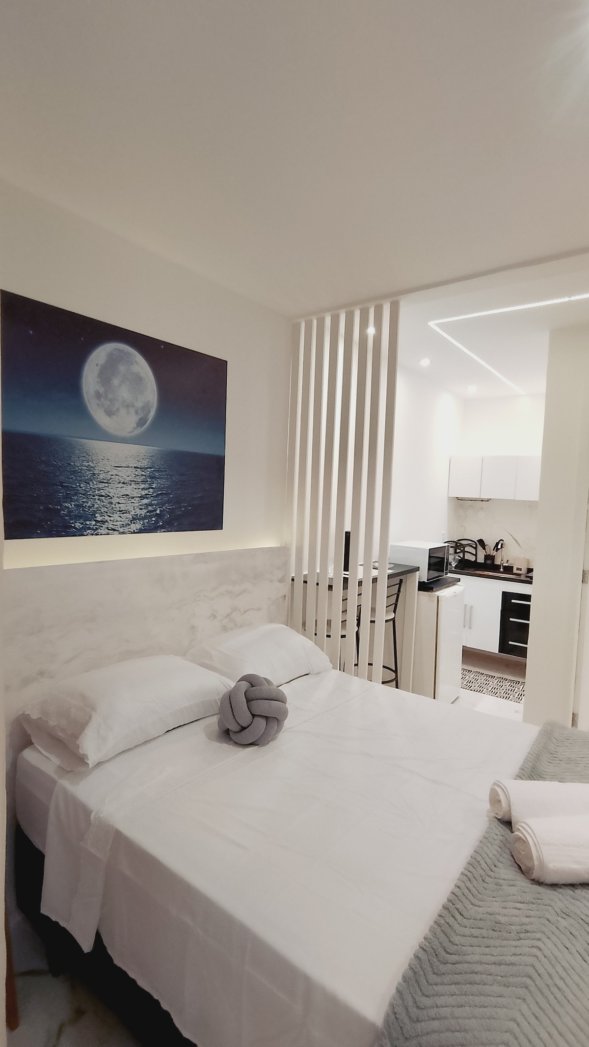 漂亮的房子,腳踏在沙灘上,面向Arraial do Cabo的大海。 我們距離卡波弗里歐-里約熱內盧機場 6 公里,11 分鐘車程。 空間包括一間套房(海景)、空調、雙人床和一張雙床(配有兩張單人床墊)。 2號房間(非套房),配有空調、雙人床和兩張單人床。 有設備齊全的廚房、全套服務區、2間全套浴室和帶沙發床和電視的客廳。不允許舉辦活動。 Insta: @amar_casa