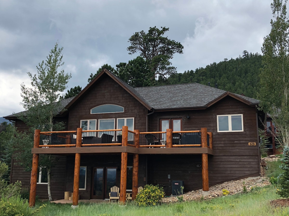 享受山區生活!全季節寵物友善房源,配備高速網路,佔地2.5英畝,配備巨大的露臺,可享受戶外烤肉,並可欣賞Estes Park區域(洛磯山脈國家公園最高峰)的最佳景觀!距離市中心活動4英里,距離國家公園入口7英里,那裡有頂級的徒步旅行、釣魚、騎馬和野生動物觀賞(以及冬季雪鞋和滑雪)!其他網站上的優質房東。
