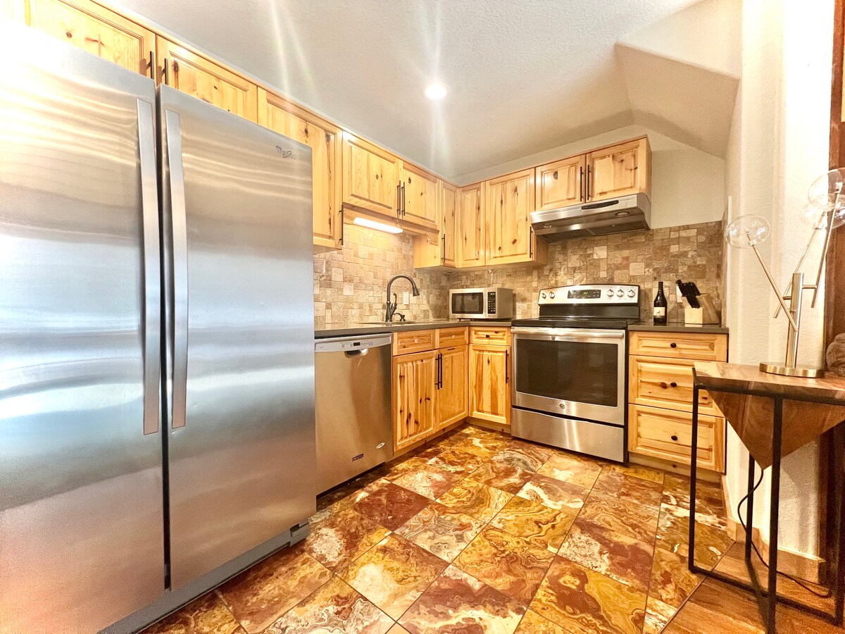 在Wunderbar公寓體驗Leavenworth市中心,可欣賞Wenatchee河和Cascade山脈的絕佳景致。 這些一樓或二樓的兩臥室公寓最多可容納四位房客,一間配有全套獨立浴室的標準雙人床臥室、一間配有全套獨立浴室的特大雙人床臥室、客廳和用餐區、設備齊全的廚房和舒適的電壁爐。 雖然無法保證特定單位,但我們會盡力滿足您的要求。