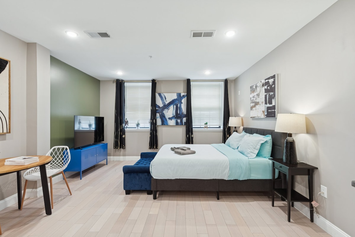 Welcome to VIVE Loft. This sleek and modern 1-bedroom Apartment combines comfort and style. Enjoy our top-notch amenities: relax on the roof deck with stunning city views, have fun in the game room with a pool table and so much more, and stay active in the 24/7 fitness center. Located in the vibrant Brewerytown neighborhood, you're just steps away from trendy eateries, cozy cafes, scenic parks, and convenient public transport. Book your unforgettable stay in Philadelphia today!