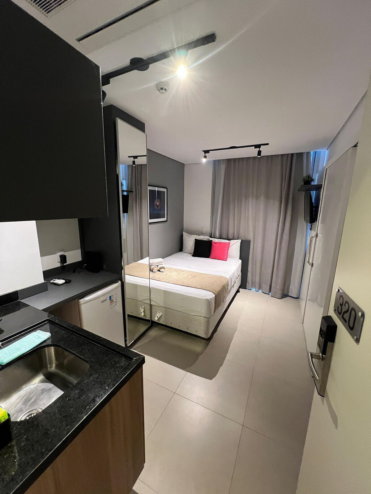 全新公寓概念公寓的新單間公寓,距離地鐵180公尺,可供兩人入住! 網路連線與科技 >高速WiFi >可上網的智慧電視 >電子鎖 舒適 >標準雙人牀 >完整的廚房 >空調 > linda vista 全套公寓 全天候禮賓服務 >泳池 >共享工作空間 >健身房 >洗衣房每次使用付費 地理位置優越 > Rua Madre Cabrini, 99 > 180公尺地鐵(步行約3分鐘) >二樓 沒有停車位