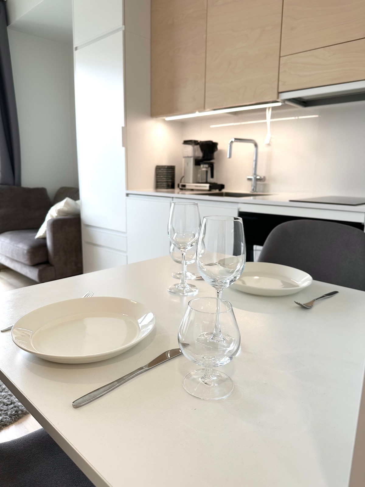 很棒的單間公寓,位置極佳! 明亮寬敞的單間公寓位於Ainola公園旁邊。 步行即可抵達市中心。 公寓配有高品質的設備:例如電磁廚師、整合式洗碗機、集成烤箱、烘乾機。 公寓內部時尚,配有美麗的餐具。 有160釐米雙人牀和第三張牀作爲充氣牀墊。 大型玻璃陽臺,有一個座位團體。 43英寸智慧電視(如Netflix )、高速網路( 200/200 )。