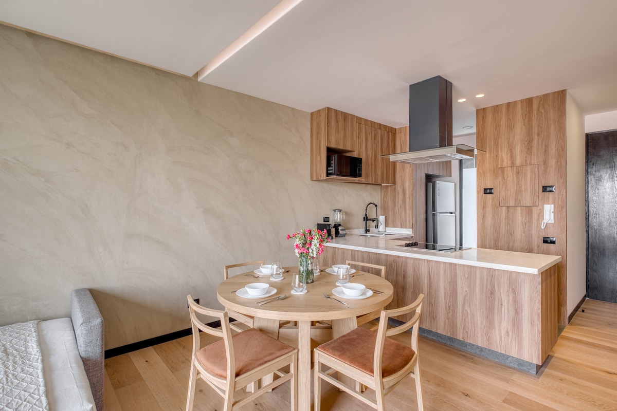 這間位於Roma Norte的時尚公寓為數位遊牧族提供完美的設施:超快的Wi-Fi、時尚的工作空間,距離Condesa最時尚的咖啡廳、餐廳和夜生活僅幾步之遙。 享受頂級設備與服務:商務中心、全套健身房、遊戲室和景觀迷人的屋頂。 保持效率,激發靈感,像當地人一樣體驗墨西哥城。