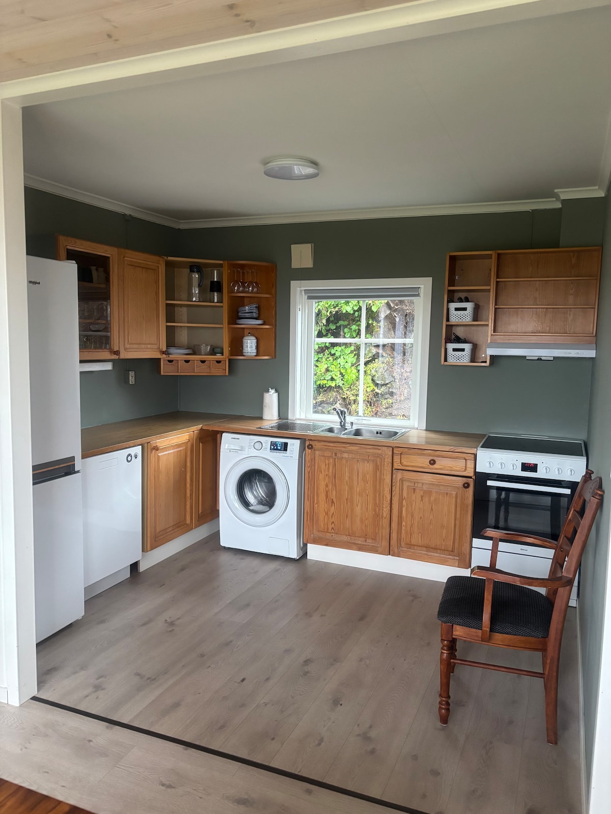 Tomannsbolig var nytt sommeren 2019, det ligger nydelig til i fjordkanten på Torsnes. Feriehuset er fullt utstyrt og har panoramautsikt over fjord og fjell.Ved huset er det uteområde med kai og liten egen strand, det ligg godt til rette for fiske i fjorden. Det er vaskemaskin og tørketrommel på bad. Hele huset består av to separate leiligheter, dette er den ene og er den største. Den minste enheten ligger i front av huset. Jondal er et paradis for de frilufts interesserte.