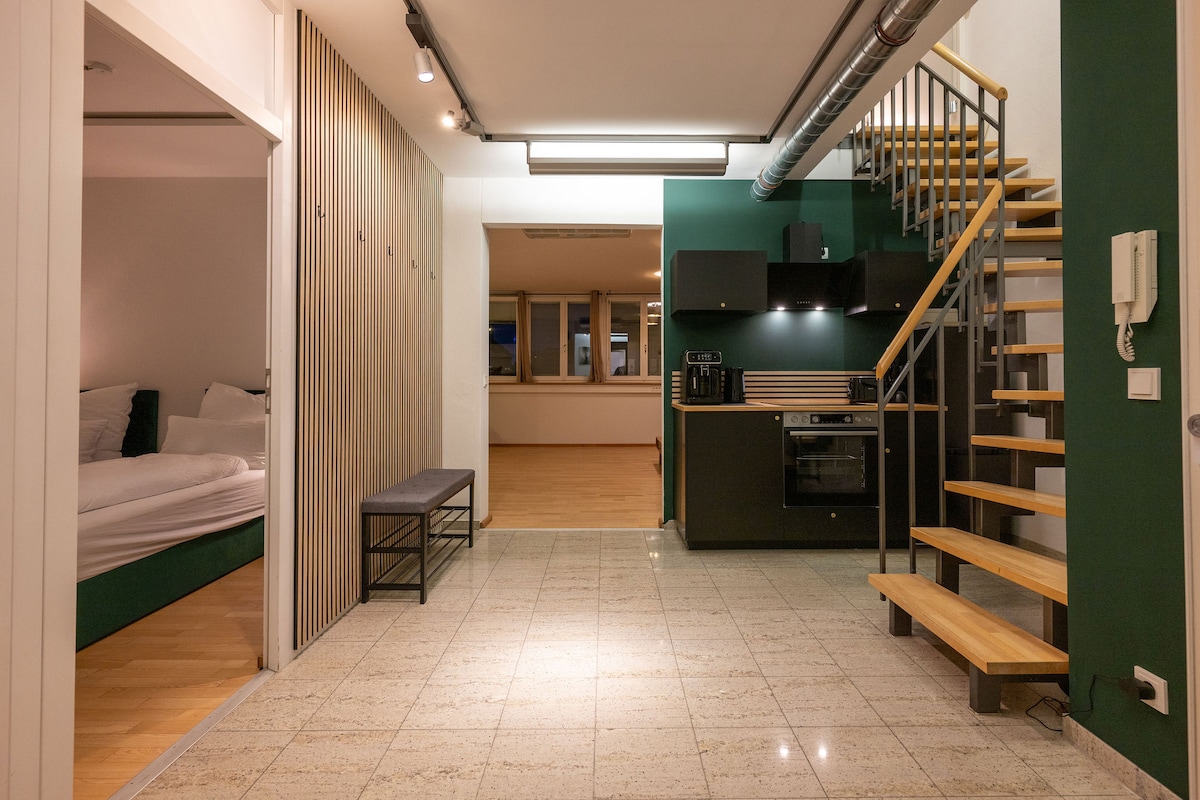 這間獨特的住所位於慕尼黑市中心,距離中央火車站僅一步之遙,擁有 203 平方公尺的起居空間和 30 平方公尺的屋頂露台。從這裡出發,您可以步行前往市內所有著名景點。位於市中心,但由於位於後面的建築物,因此非常安靜。 該住宿適合任何類型的團體。無論是家庭、同事或朋友,都會因為這裡寬敞的空間而感到舒適。