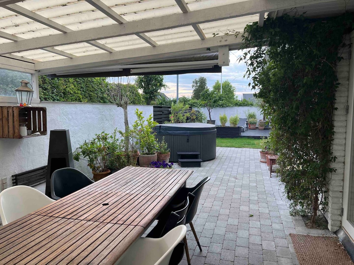Enjoy a peaceful family retreat just 100m from the beach and only 25 min from Copenhagen. This spacious villa includes a private spa and a fully enclosed garden and a sunny terrace. Kids can jump on the 6m trampoline, while adults relax with a drink. Paddleboards, and a powerful BBQ are included – perfect for active days and cozy evenings. S-train just 5 min away. Guests love the calm vibe, comfort, and that true home-away-from-home feel. One minute walk to the beach at the end of our street.