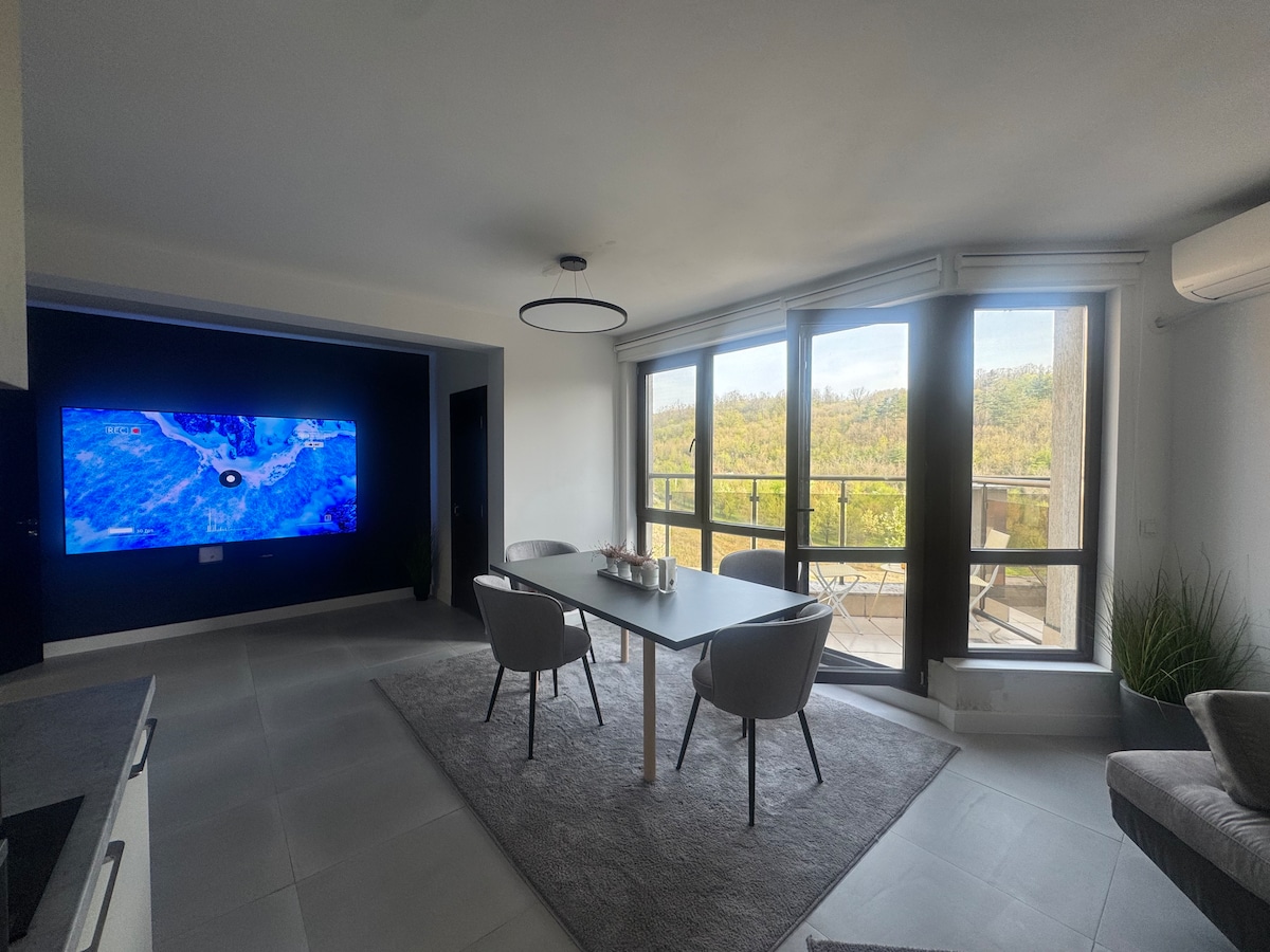 歡迎來到我們位於V中心的全新可愛、陽光充足和現代化的2間臥室公寓。Tarnovo,感覺像您的家一樣。它坐落在市中心,景觀優美。 我們確保公寓配備您住宿所需的一切設備,同時提供俯瞰山丘老城區的美景。市內所有餐廳、酒吧和景點都非常靠近。這個區域很漂亮、安靜、安全,大樓對面有免費停車位。