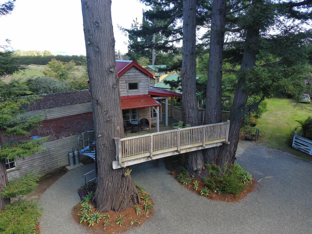 The Cedar Treehouse is a warm & cozy, unique rustic treehouse perched between 2 majestic Redwood trees. A small but simple self contained area houses a new luxurious cedar lined bathroom with hot shower & flushing toilet & kitchenette. A bespoke handmade ships ladder takes you to a cosy queen size bed tucked up in the loft with views of the surrounding gardens & branches of the trees. The exterior cladding, floor & furniture are all hand built from timber locally sourced & milled