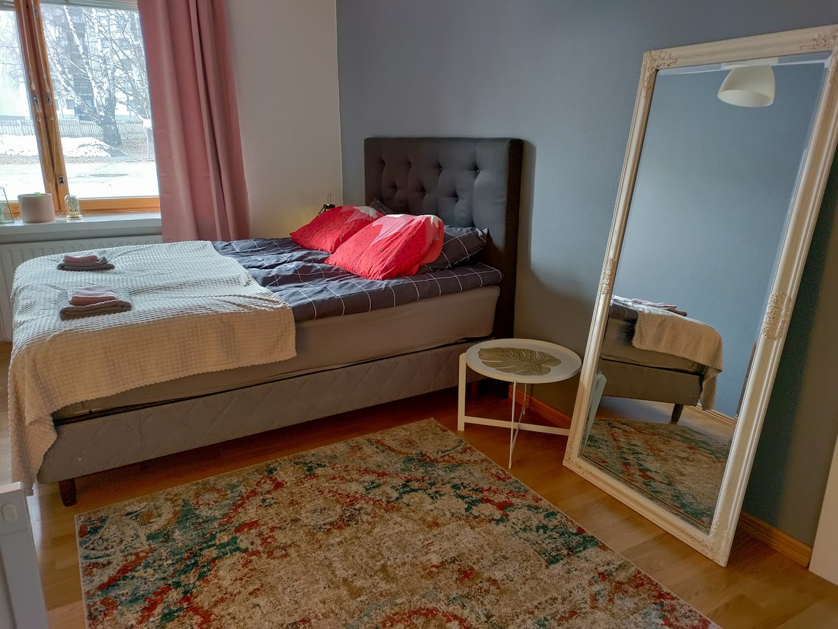 Beautiful, renovated two-bedroom apartment with two balconies and a sauna in the center of Rovaniemi close to all services. Please feel free to ask if you want an earlier chekc-in or later check-out. Kaunis, remontoitu kolmio kahdella parvekkeella ja saunalla Rovaniemen keskustassa kaikkien palvelujen läheisyydessä. Voit tarvittaessa pyytää sisään-tai uloskirjautumiseen aikataulumuutoksia.