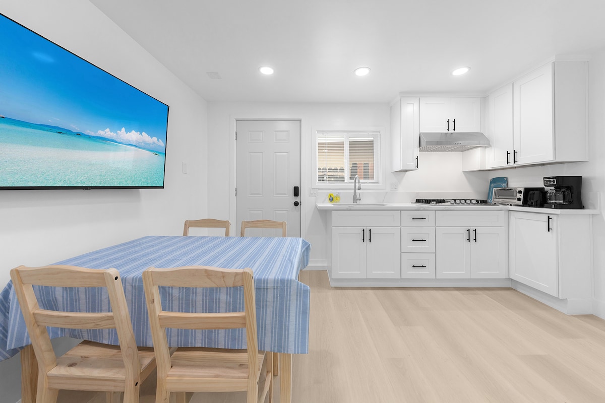 全新翻修的單間公寓,有您自己的便捷停車位、獨立入口、廚房和浴室。包括一張雙人床和一張雙人床。寬螢幕Roku電視前有一張大沙發,配有Netflix、空調/暖氣、微波爐和洗衣房。我們也說中文