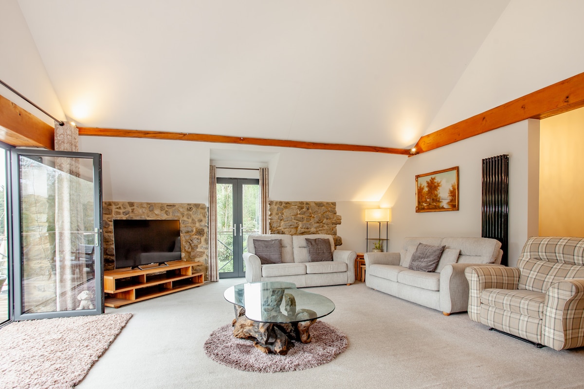 最近翻新的橡木框附屬建築,包括大型開放式休息室、用餐區和廚房區域。淋浴間,配有洗手台和廁所。 樓上,舒適的雙人臥室。(可轉換為兩張單人床) 樓下有額外的沙發床,最多可容納4位房客。 可靠的WiFi和遠距工作空間。 小巧、低調的私人露臺區域。 私人停車位。靠近高爾夫球場和村莊中心。 入住這間風格出眾的房源。