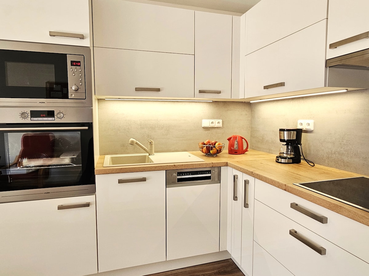 入住為最舒適的生活而設計和裝潢的和諧公寓。 我們考慮了個人空間的通用性,以及充足的儲存空間和設備,以便舒適地烹飪。 公寓非常適合長期住宿,但由於可輕鬆前往布爾諾市中心,因此前往布爾諾一晚或多晚的遊客也會喜歡。 公寓位於BVV展覽中心、Mendel廣場和Winning Group Arena附近。 停車位在車庫內。