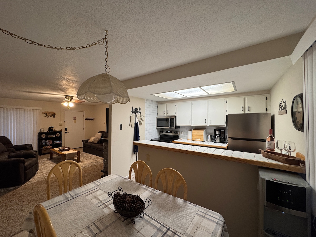 Enjoy all the seasons of Ruidoso with a clear view of Sierra Blanca! 'Buena Vista' is a 2 bedroom, 2.5 bathroom condo with a large deck overlooking the golf course and mountain. (Map location on Airbnb isn't quite accurate, we face the golfcourse!) This cozy condo offers a gas fireplace and comfortable furnishings. The kitchen is updated and equipped with everything you need and more. Check out the reviews! Just minutes to Ski Apache, Grindstone Lake, and Inn of the Mountain Gods.