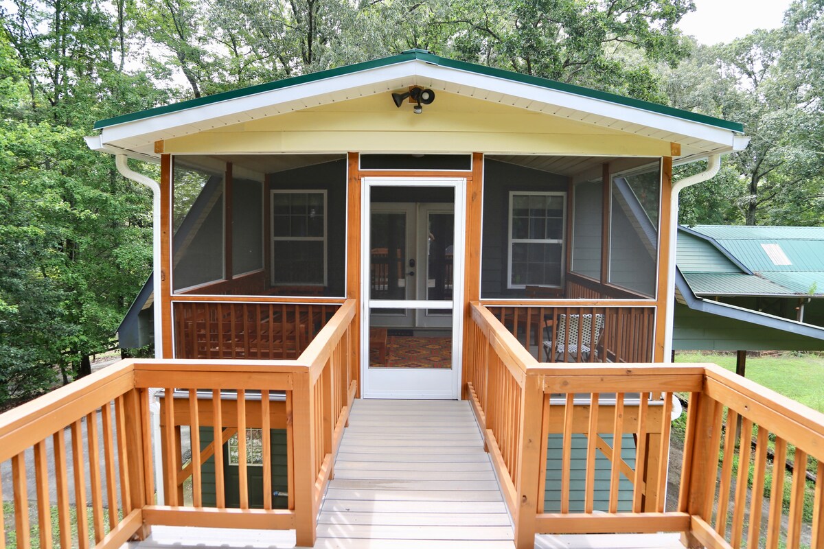 500平方英尺的小屋坐落在藍嶺山腳下。 全套浴室、廚房、露臺、烤架。洗衣機和烘乾機 新特里恩馬術中心5-8分鐘- 1高速公路出口 特里恩、蘭德倫、薩盧達、路爾湖、煙囪岩, 葡萄園、瀑布、徒步旅行、藍嶺公園大道、比爾特莫爾莊園、阿什維爾、古董、皮艇、管道、鐵路2號步道自行車路線(26英里rt)、峽谷高空滑索和高繩索課程、美食之旅、Defiant威士忌釀酒廠(25分鐘)、划船、抱石、農貿市場(2個少於10分鐘)等。