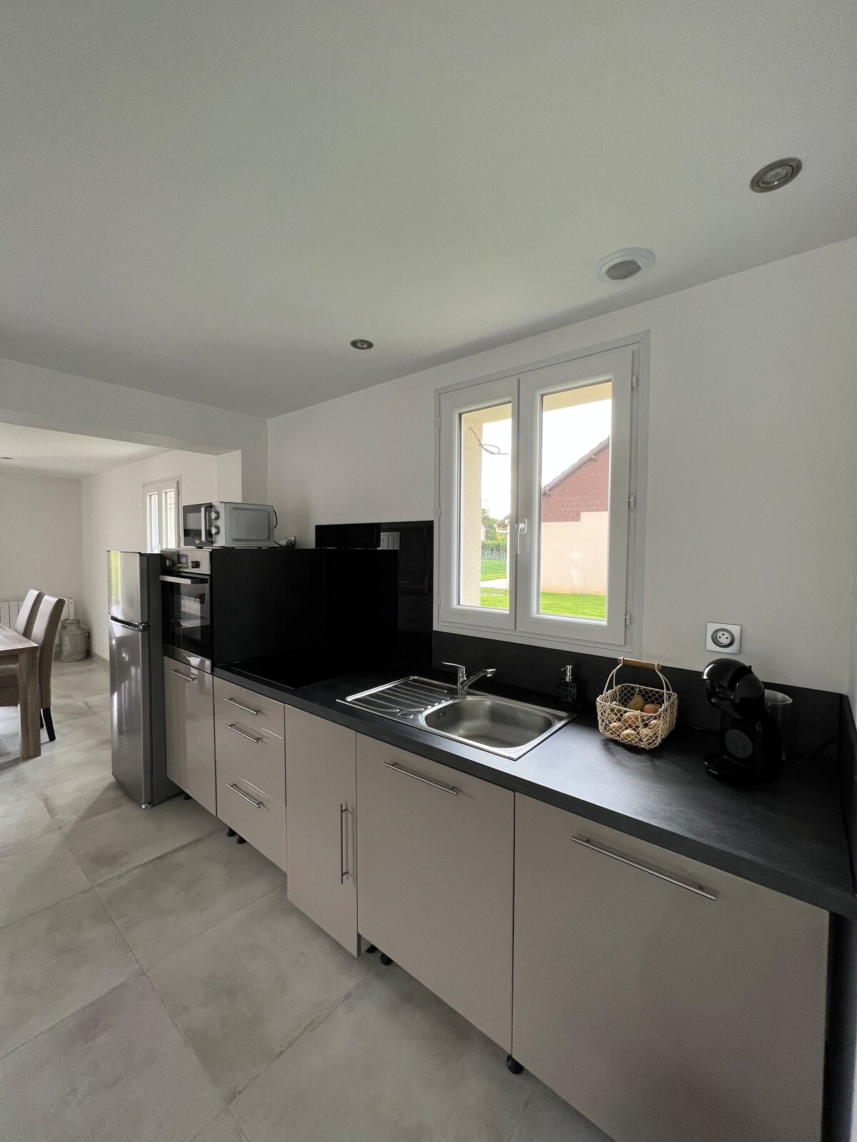 享受優雅的中心住宿。鄉村別墅:1 間帶壁爐的客廳(提供木材)、設備齊全的廚房(洗碗機、微波爐、水壺、烤麵包機等)、陽光明媚的露臺、1 間臥室(160x200 床)、1 間臥室(2 張 90x200 床)(可提供折疊床/嬰兒椅)、浴室(浴缸)、獨立廁所、WiFi、辦公區和兒童區。此房源剛剛經過全面翻新。非常安靜。周圍有很多活動(騎馬、步行、騎自行車、各種商店)。