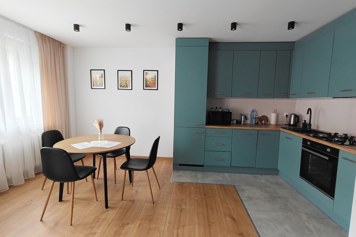 位於市中心的現代化公寓,靠近Rybnik美麗的聖安東尼大教堂。 非常寬敞的室內空間,配有獨立臥室,寬敞的客廳配有沙發牀,可供額外房客使用。 WiFi、咖啡機、洗衣機和設備齊全的廚房。 我們還為房客提供熨鬥、熨衣板和吹風機。
