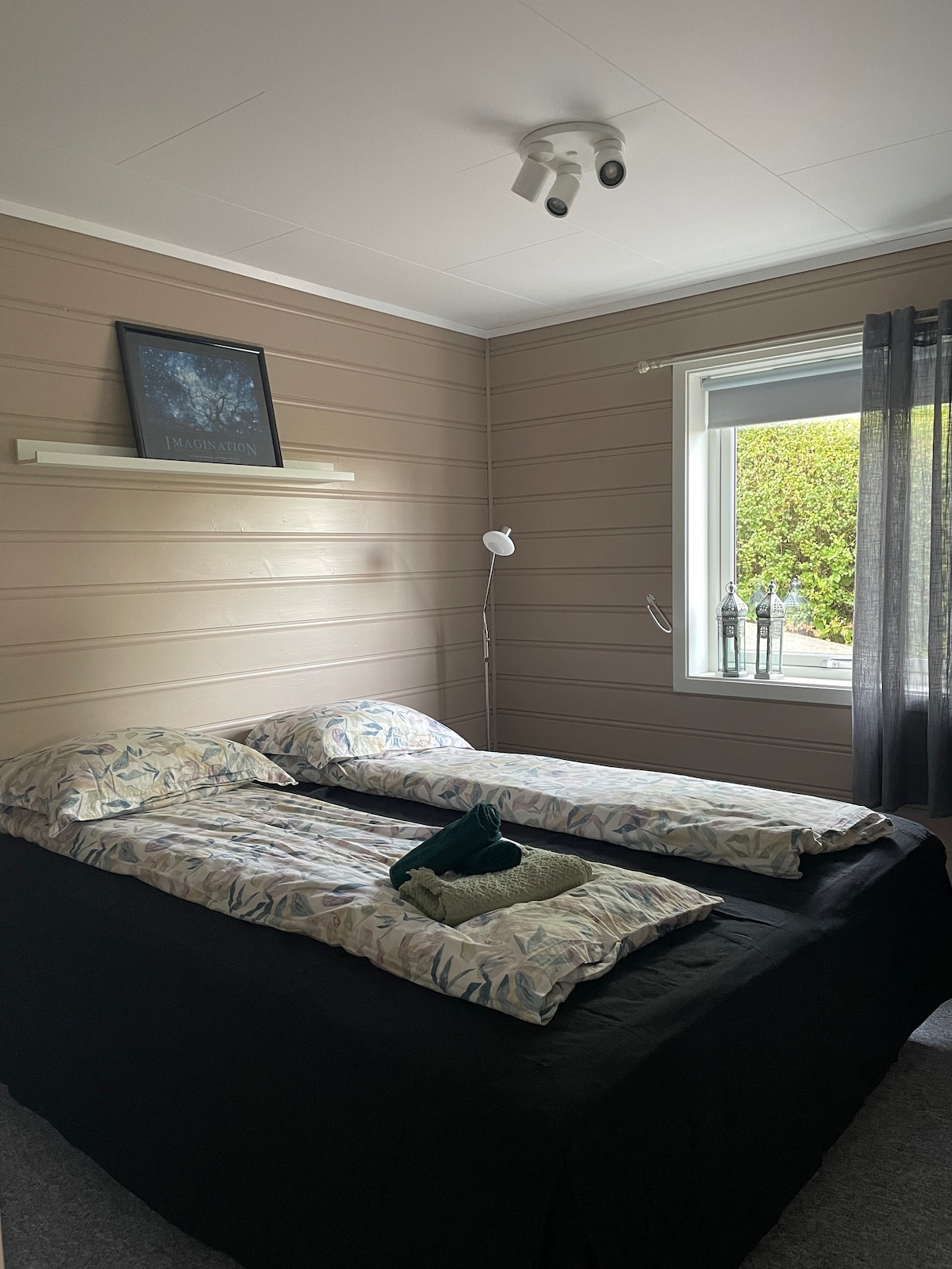 位於格裏姆斯塔德市中心附近安靜區域的小公寓。 一間臥室配有雙人牀( 150釐米) ,以及一張沙發牀,可多住一人(如適用,請提前告知我們)。 浴室設有淋浴間,可從臥室進入。 小廚房,配有冰箱、水壺和微波爐(無烤箱/爐具)。 將車停在宿舍外面。 步行10分鐘,開車2分鐘即可抵達格裏姆斯塔德市中心。 步行30分鐘即可抵達UiA ,但附近有良好的巴士連接。