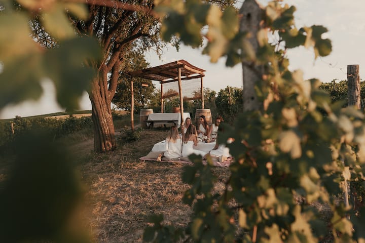 在蒙費拉托葡萄園野餐