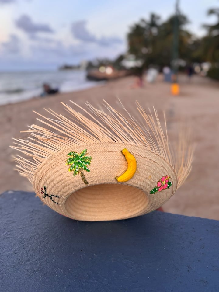 在舊聖胡安設計一個拉菲草袋
