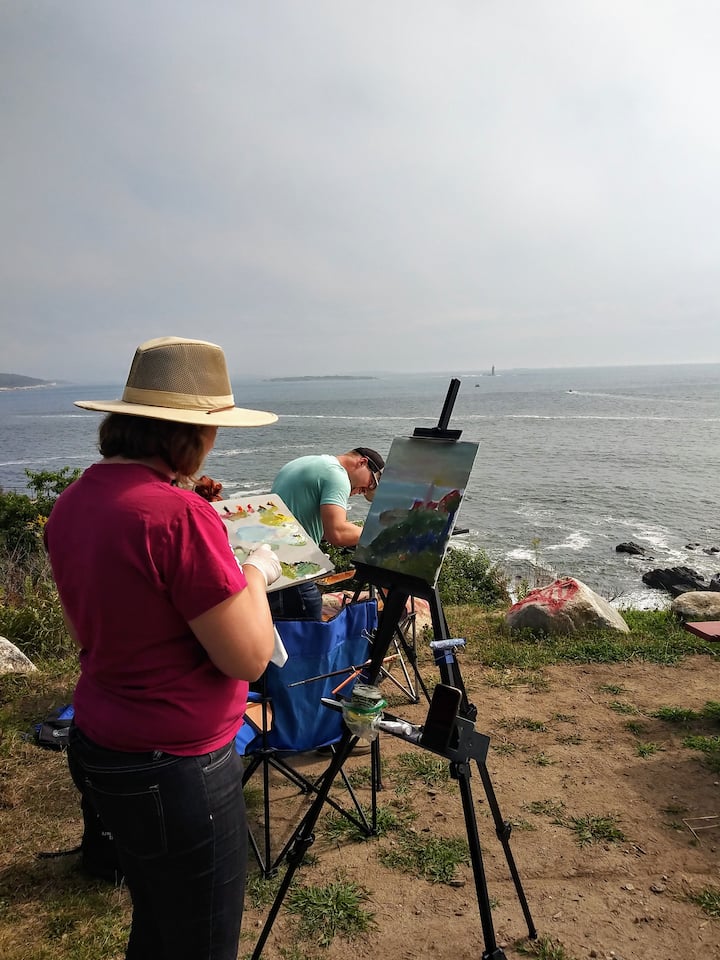 在緬因州用水彩畫寫生