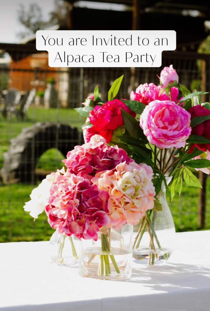 在農場動物保護區與羊駝一起舉辦茶會