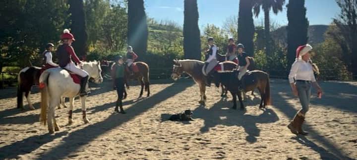 在山坡牧場騎馬與學騎馬