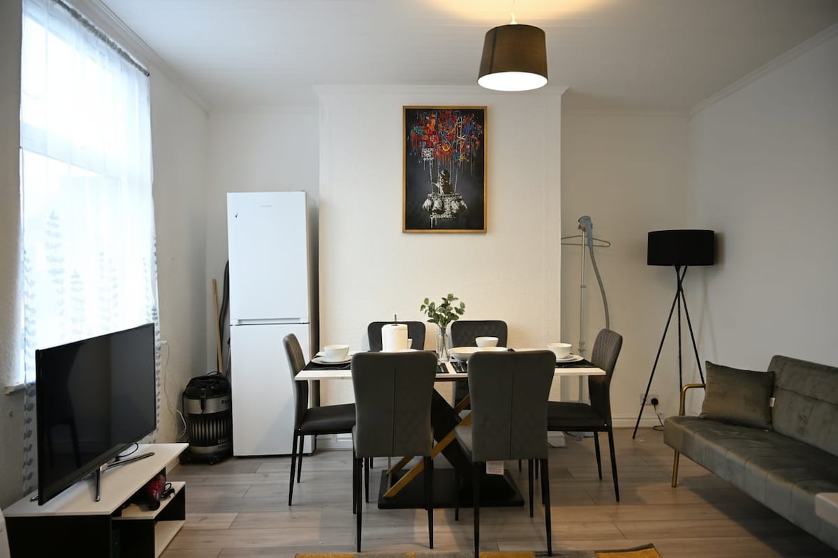Relax with your family or friends in this stylish new-built house. Located within easy access to key Manchester / Salford spots. Completed in 2024, the house is brand new, as well as utensils, bed linens, etc. House features two bedrooms, with king size bed in master bedroom, and double bed in second bedroom, memory foam mattresses, cotton bed sets . Fast WiFi, desk space and everything you need to feel at home away from home. Free private parking space is available.