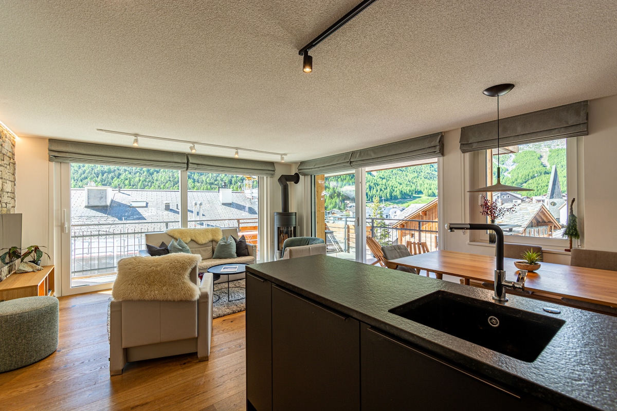 Marmot lodge公寓是一間全面翻新的閣樓公寓,可欣賞壯麗的山景和村景。安靜地坐落在Saas Fee最理想的位置,靠近滑雪坡的邊緣,靠近商店和餐廳。雪鞋和徒步小徑從前門開始。 設施包括設備齊全的水療中心、健身室、兒童遊戲室和兒童泳池,讓您的家庭假期難以忘懷。
