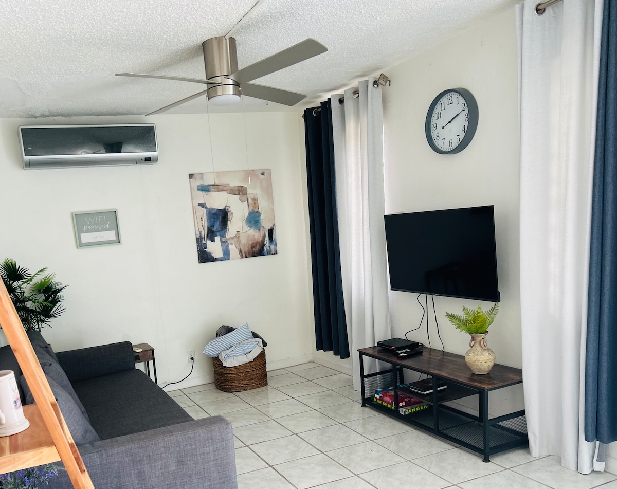 舒適的單間公寓位於兩個單位的物業中,有獨立的入口和停車位。 設備齊全,有小廚房 這間單間公寓坐落在一個迷人的街區,是探索波多黎各所有景點的中心樞紐。 使用我們的太陽能電池板和電池系統,在住宿期間享受安心,確保您的假期不間斷。 在靠近超市和餐廳的現代化空間中體驗最棒的加勒比海。 您的獨特假期正等著您!