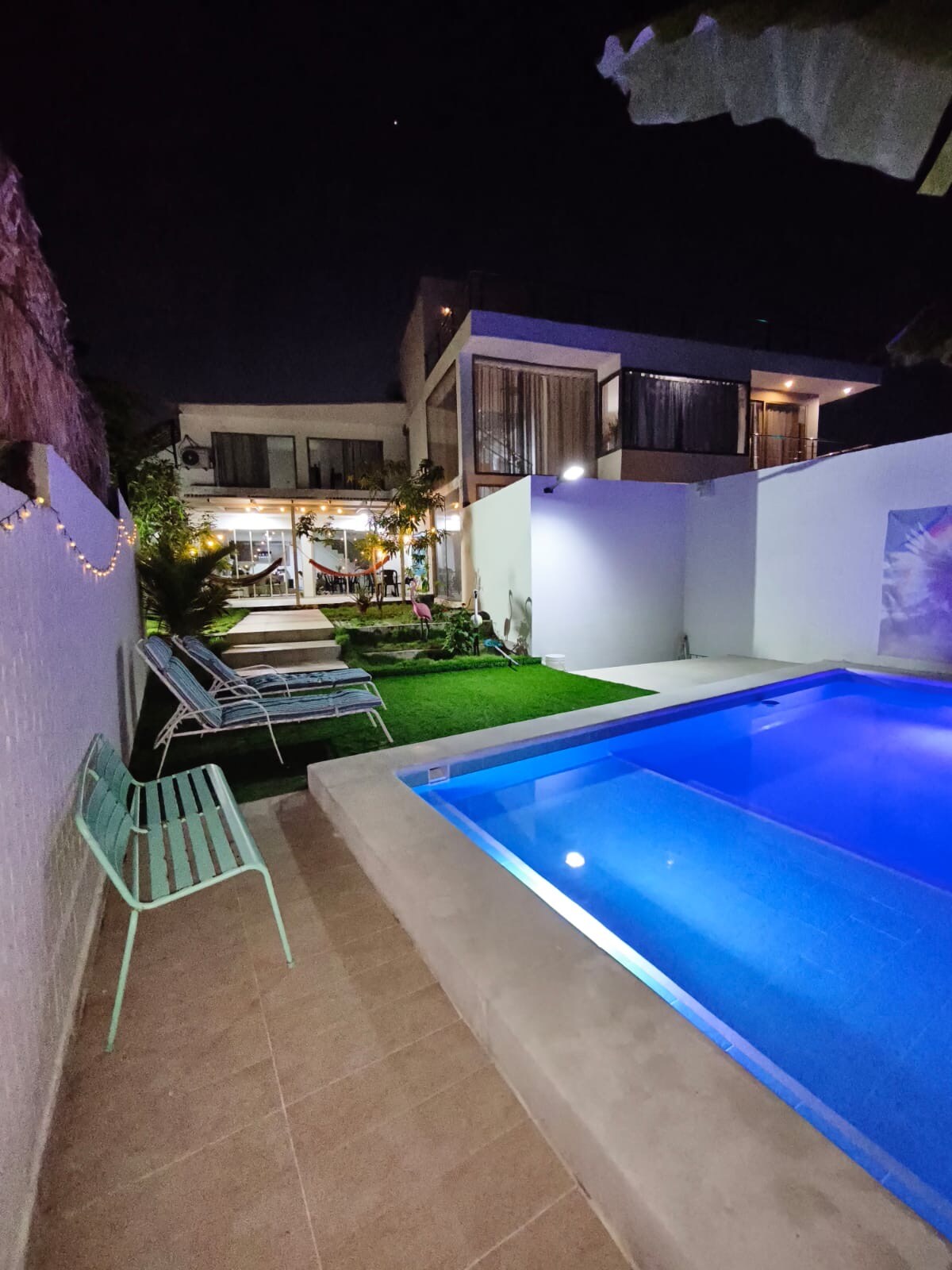 This comfortable villa is located on the outskirts of Juan de Acosta. The villa has two bedrooms with air conditioners, five beds, equipped kitchen, swimming pool, and barbecue area. We admit a minimum of two guests, if you want to rent the property alone, you need to pay the first night double. Text us before making your reservation if you want to know more about this. For stays longer than 3 nights, it’s necessary that the maintenance person enters the property in order to water the garden.