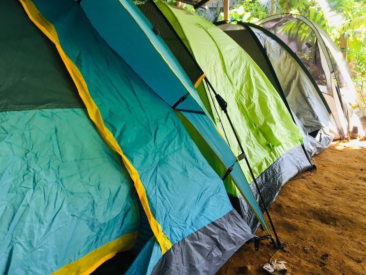 在離科倫坡不遠的鄉村度假。 猴子、鳥類和偶爾的野豬是您好奇的鄰居。 帳篷建在私人桃花心木森林中,其地面涼爽、平靜,充滿新鮮空氣。 村內有瀑布、溪流、寺廟和洞穴,乘坐嘟嘟車幾分鐘即可抵達。