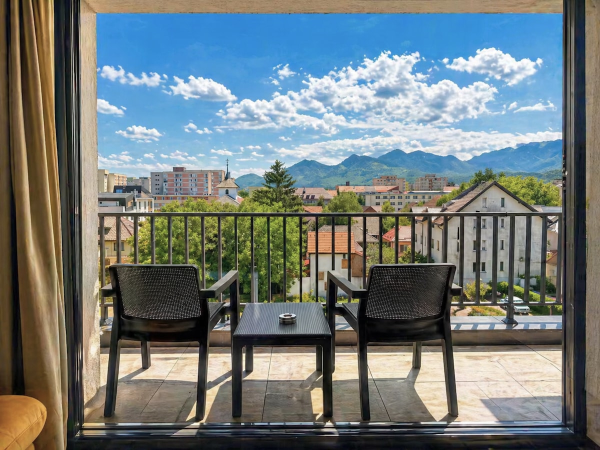 時尚的空間,獨特的舒適感。俯瞰城市天際線和布拉索夫最佳自然景觀的迷人景色。被大自然包圍,但位於市中心,交通便利。探索周圍的步道和坦帕保留地,同時距離布拉索夫的歷史中心僅一步之遙。在一整天結束後,您可以在室內壁爐旁放鬆身心,或在美麗的露臺上享受新鮮空氣,同時體驗無與倫比的隱私和寧靜。