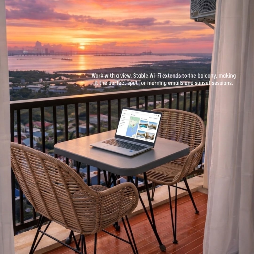 Monochromatic tones and plush textures welcome you into this beautifully designed 37 sqm studio in Tambuli Seaside Living. Enjoy a queen-size bed, a cozy sofa bed, fast Wi-Fi, and a fully equipped kitchen, plus a private balcony overlooking the Hilutungan Channel. Free access to the condo’s exclusive pools completes this relaxed, resort-style escape just minutes from Mactan Airport.