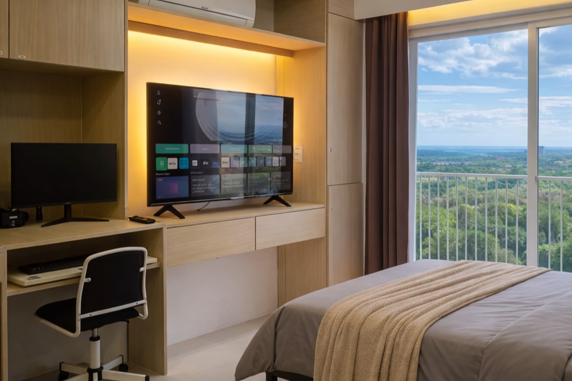這間華麗的單間公寓坐落在豪華的 Tambuli 海濱,讓您享受舒適的住宿體驗。探索度假村餐廳、泳池、私人海灘、令人興奮的景點和娛樂設施,然後回到可愛的單間公寓,其時尚和便利的設計將滿足您的每一個需求。 12樓史詩海景 ✔ 舒適的雙人床+沙發床 ✔ 開放式單間公寓生活 小✔ 廚房 ✔ 智慧電視 ✔ 高速 Wi-Fi ✔ 免費度假村設施(泳池、停車位) ✔ 付費設施和服務