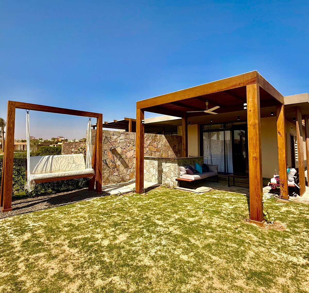 逃到索馬貝(Somabay)的豪華海灘小屋,距離紅海僅幾米,就在風箏中心旁邊。 這個浪漫的隱藏處非常適合情侶和海洋愛好者,提供現代舒適、優雅的設計和設備齊全的小廚房。 在海浪聲中醒來,花一天時間放風箏、潛水或曬日光浴,並在日落時分在私人露臺上放鬆身心。 海灘、探險和放鬆都在您的門口,您的紅海夢幻度假勝地正在等待著您!