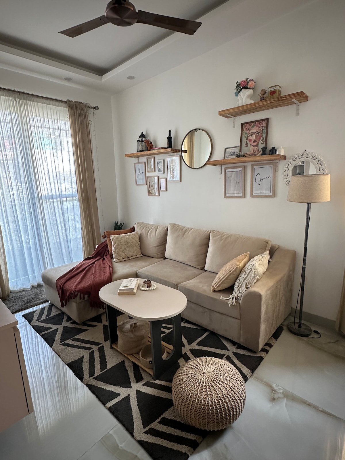 位於古雅的Hauz Khas村莊的隱藏寶石,可俯瞰13世紀的Feroze Shah Tughlak紀念碑。 HKV在80年代末期城市化。 周圍有藝術咖啡館、精品店和古董店。 公寓裝飾優雅,坐落在市中心。 請注意,這是一個城市化的村莊。 機場40分鐘。 建議您順利抵達16美元的接送服務 通往公寓的道路狹窄,但可以通行。 私人車和計程車會來到公寓門口。 主門有OLA和UBER。 3位房客,4位加上額外的床墊。