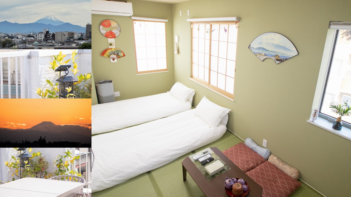【無料送迎/荷物預かり可】新築和室+観景屋上/徒歩1分コンビニ薬局/新宿直通11分/最大3名