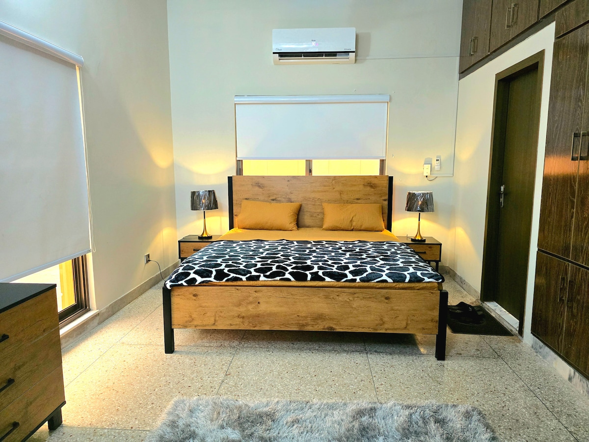 歡迎來到The Lodge ! 伊斯蘭馬巴德著名的F-10公園塔樓中的現代化和極簡主臥室。 這間公寓採用高端裝潢和時尚的現代美學設計,提供溫馨、奢華的氛圍,非常適合短期和長期住宿。 The Lodge位於市中心最便利的地區之一,提供完整的便利性、舒適性和隱私性,邀請您在現代奢華與輕鬆生活的空間中放鬆身心。
